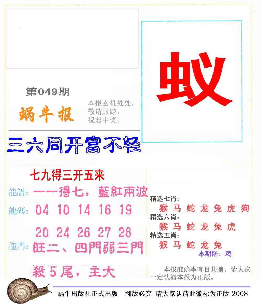 049期蜗牛彩报(正版)[图]