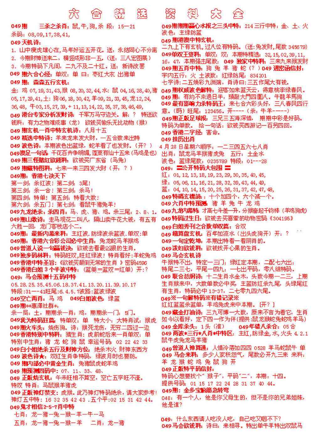 049期六合精选资料大全[图]