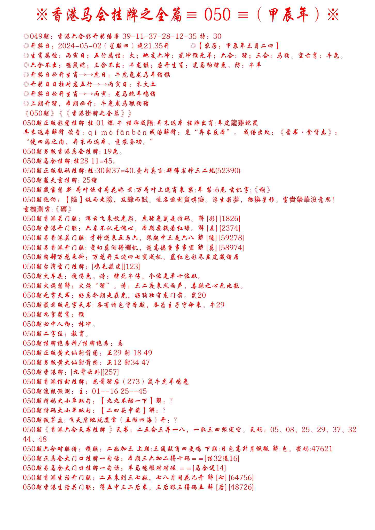 050期手写马会挂牌[图]