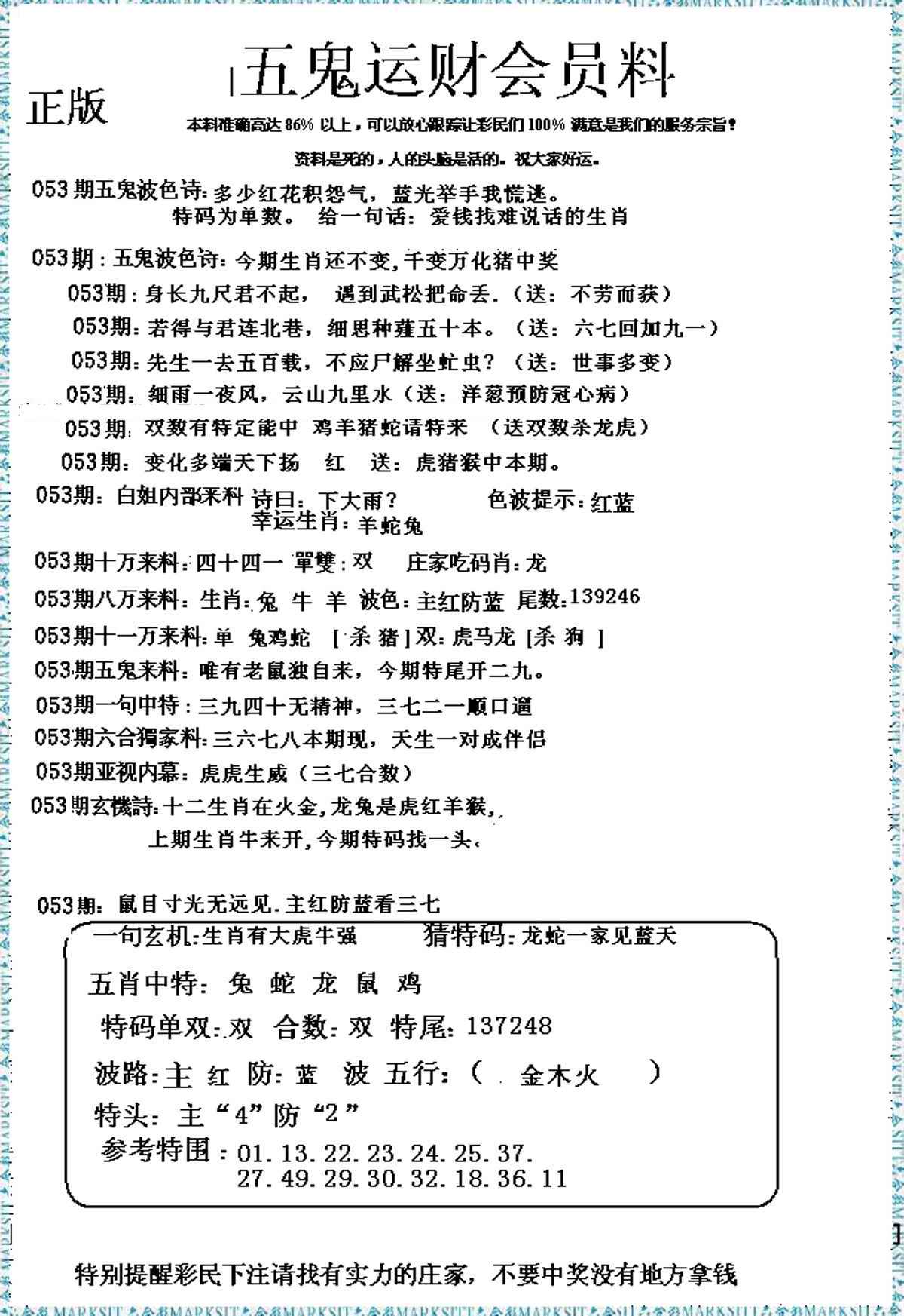 053期五鬼运财会员料[图]