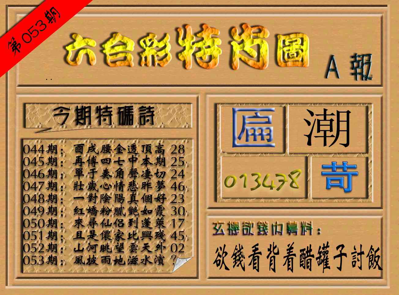 053期六合彩特肖图(A报)[图]