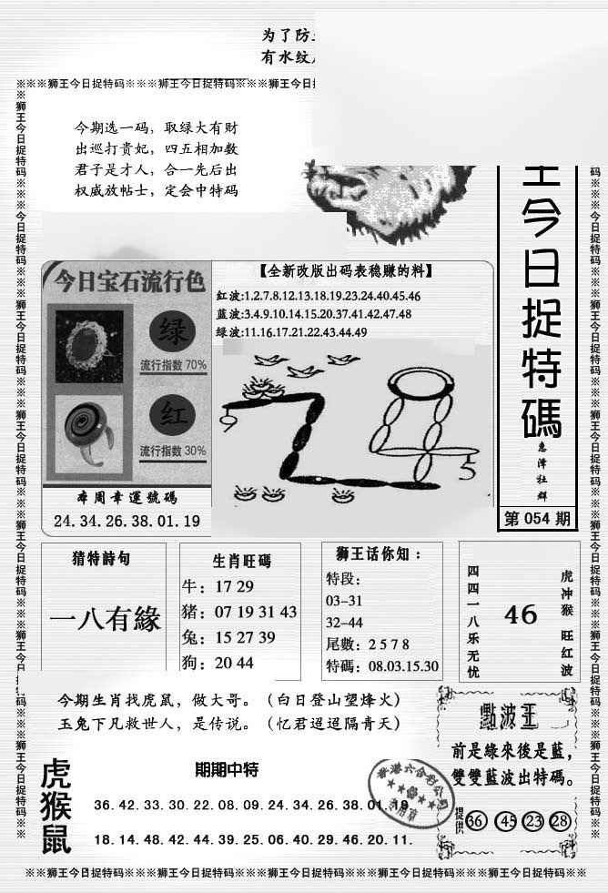 054期狮王今日抓特码[图]