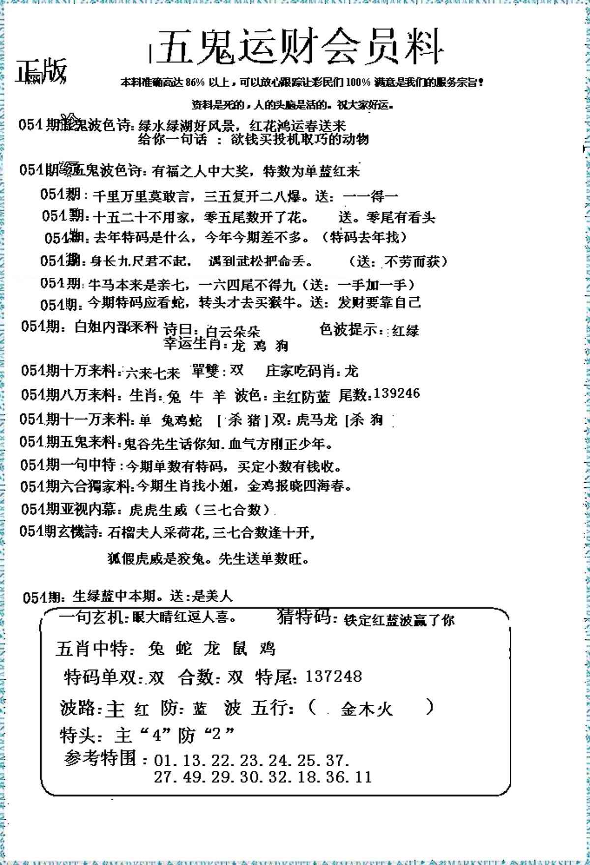 054期五鬼运财会员料[图]