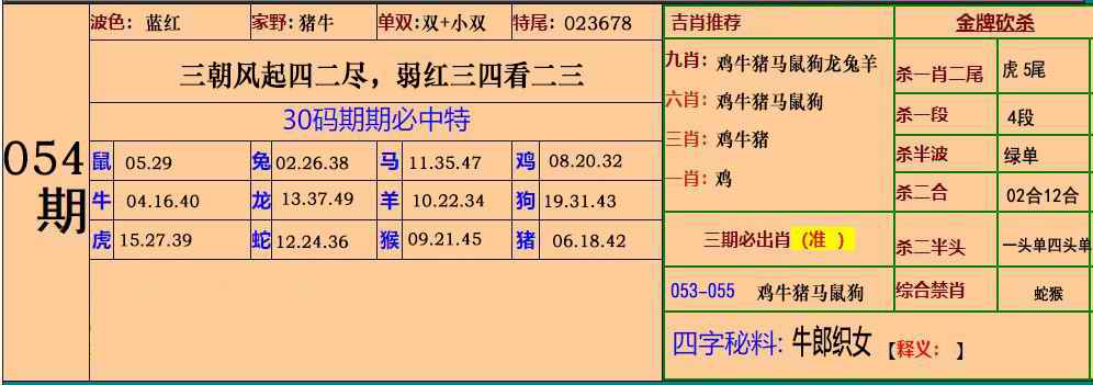 054期小鱼儿30码期期中[图]