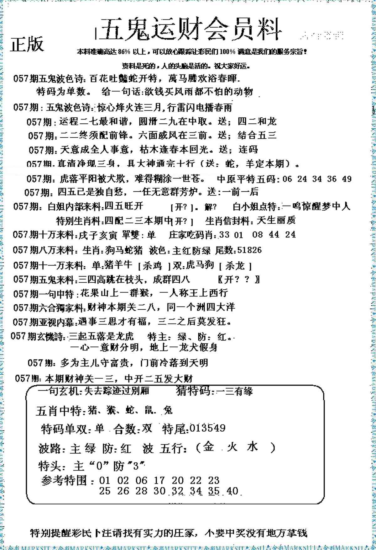 057期五鬼运财会员料[图]