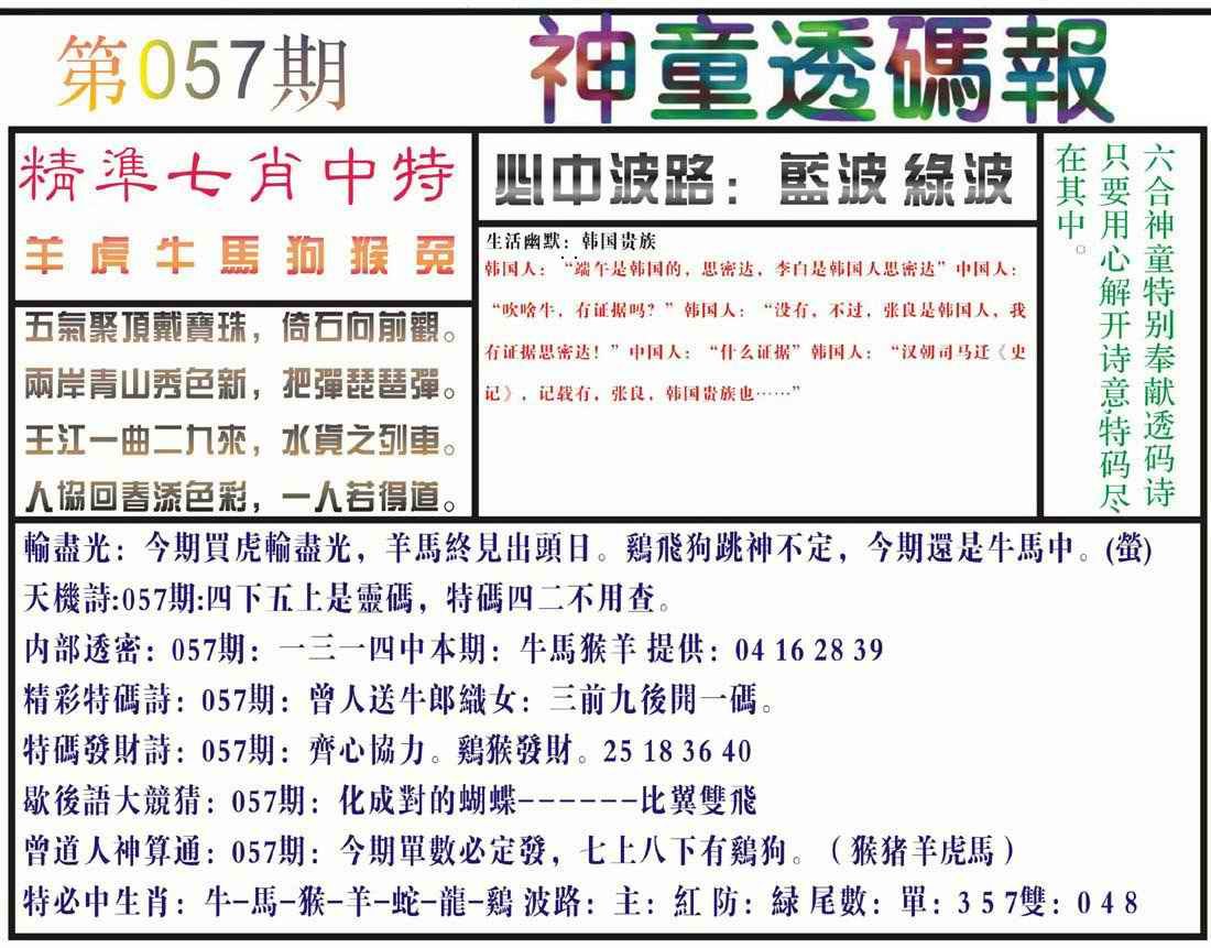 057期神童透码报(正版)[图]