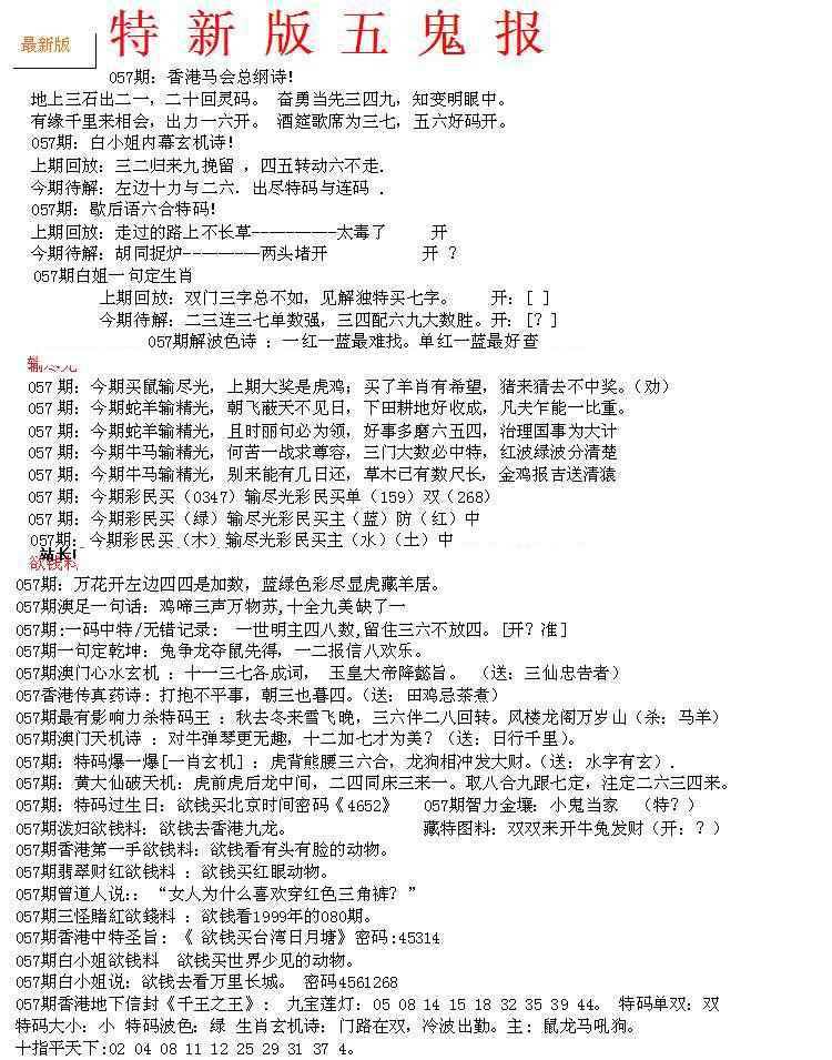下一篇:057期特新五鬼B[图]