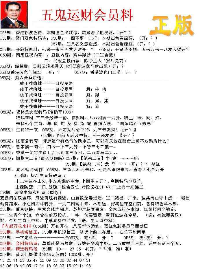 058期正版五鬼运财会员料[图]