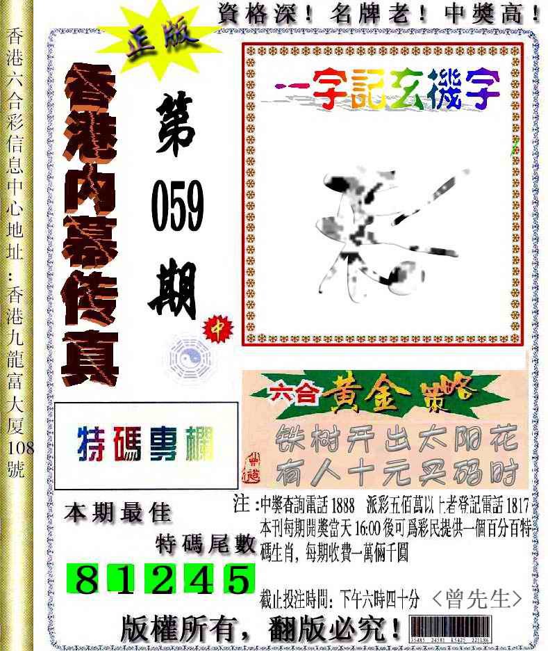 059期香港内幕传真信封图[图]