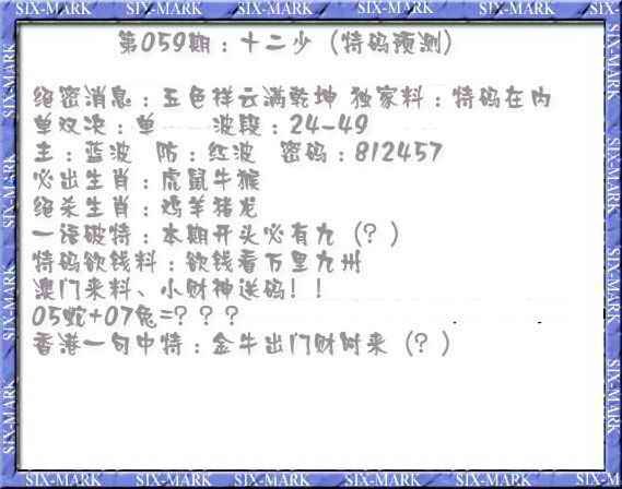 059期十二少(特码预测)[图]