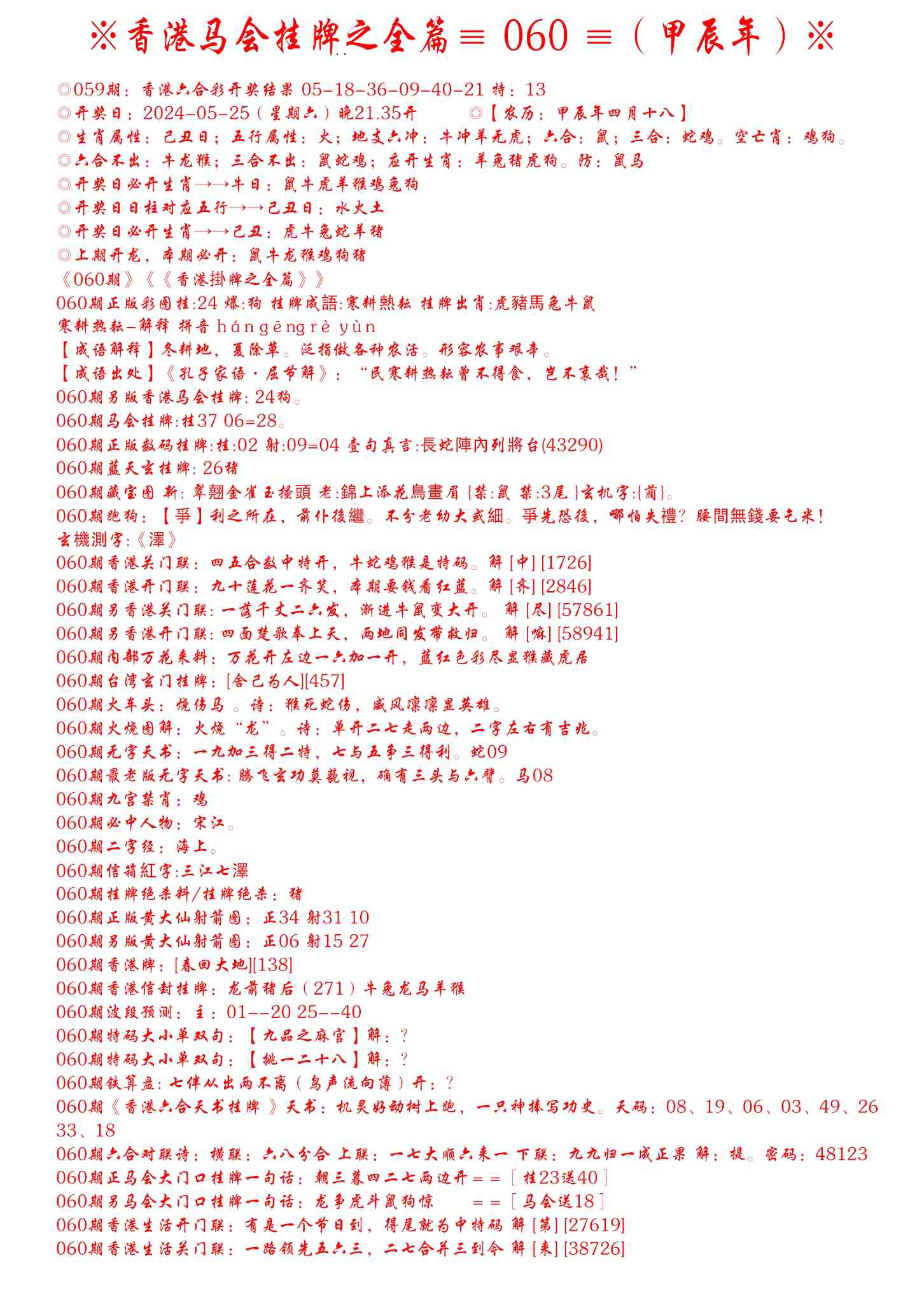 060期手写马会挂牌[图]