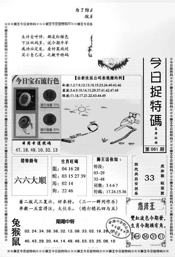 061期狮王今日抓特码[图]