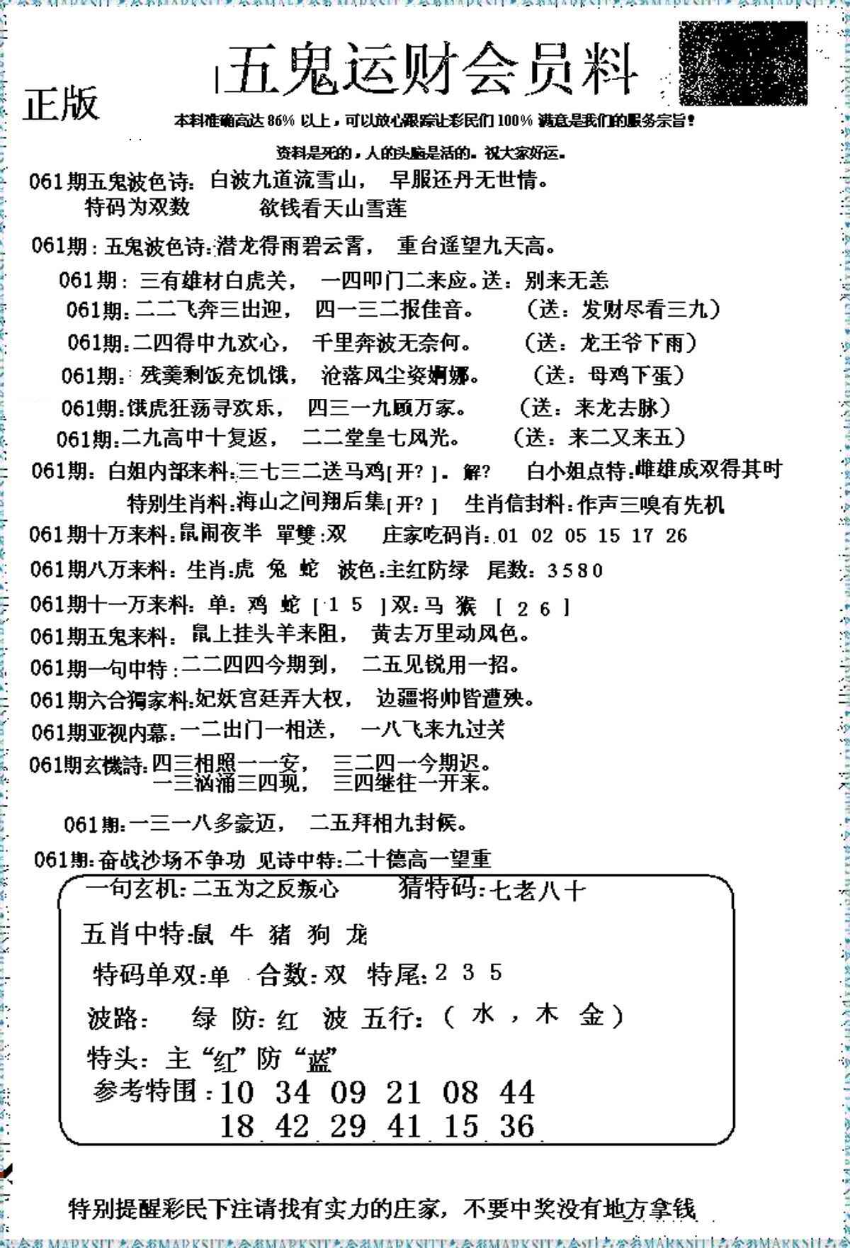 061期五鬼数理报[图]