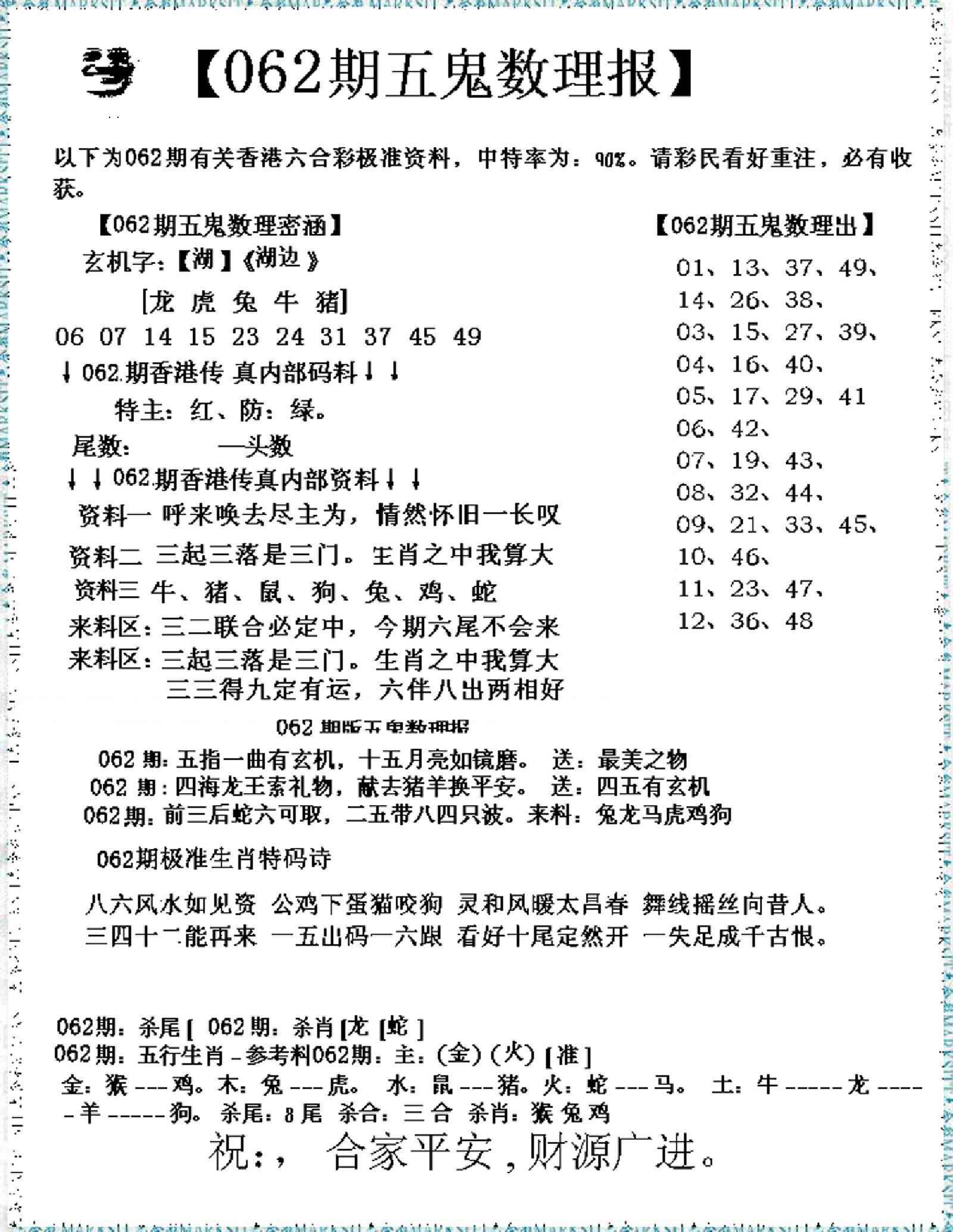 062期五鬼数理报[图]