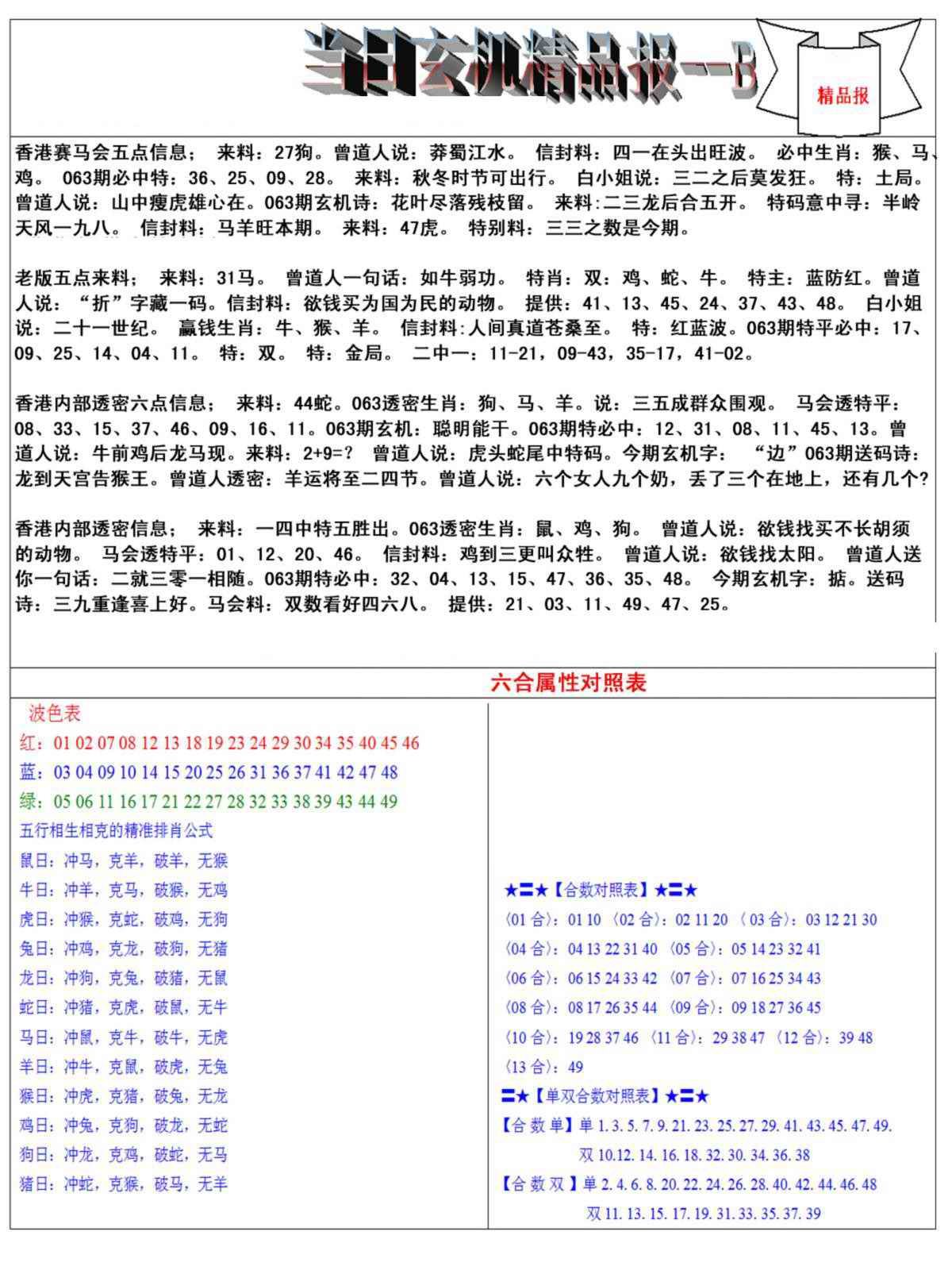 063期当日玄机精品报B[图]