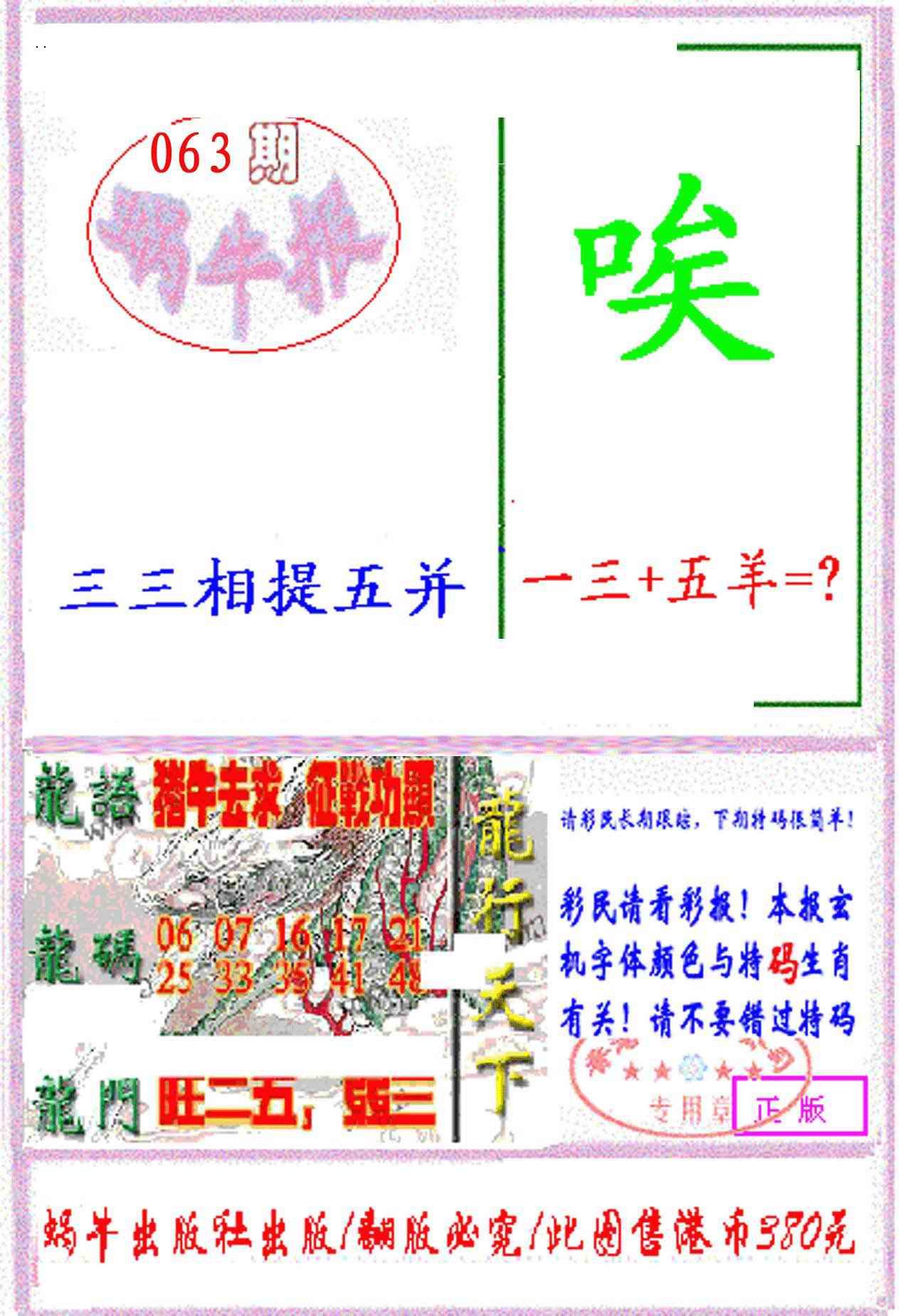 上一篇:063期九龙特新刊[图]