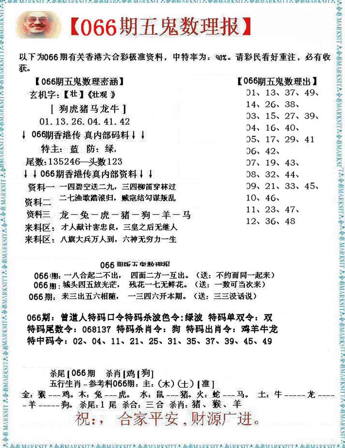 066期五鬼数理报[图]