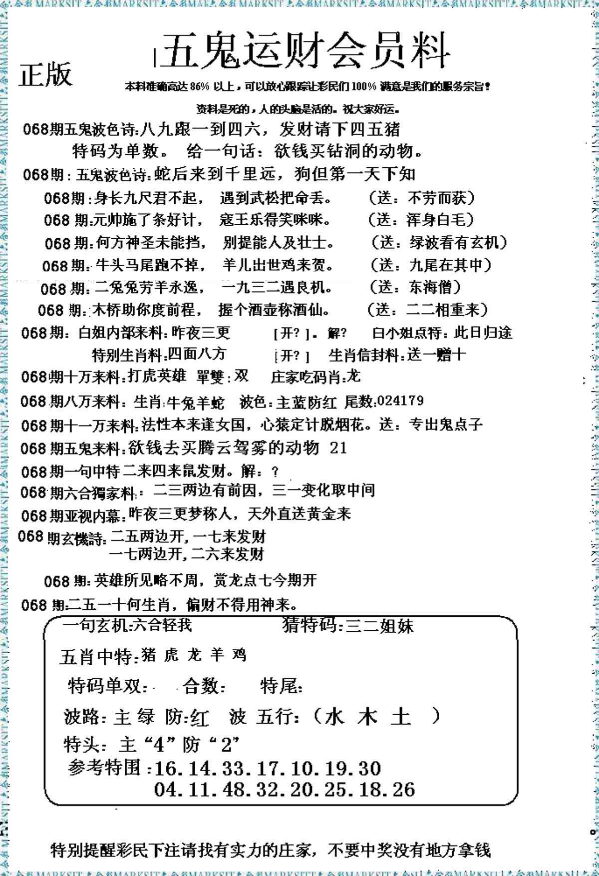 068期五鬼运财会员料[图]