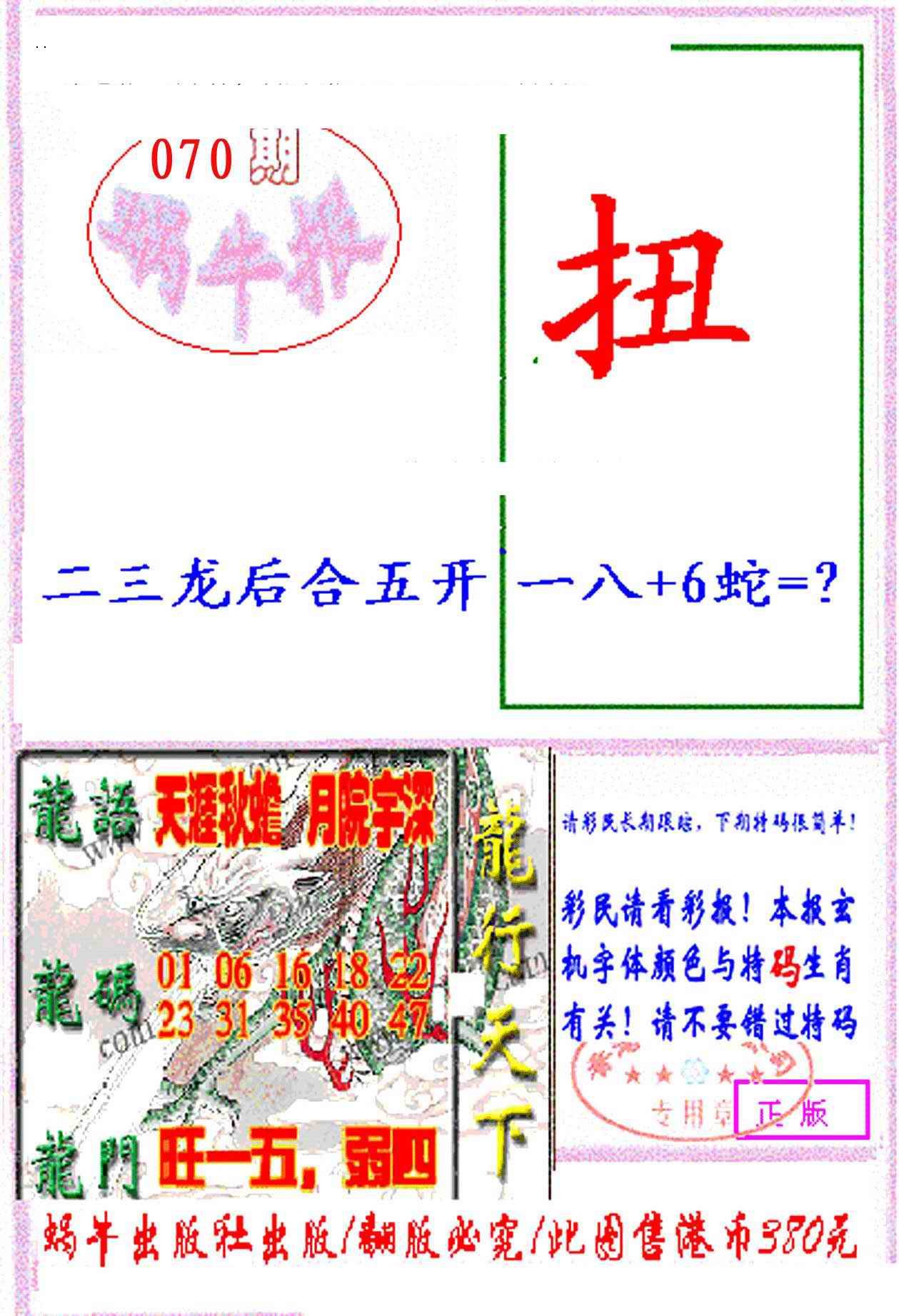 上一篇:070期九龙特新刊[图]