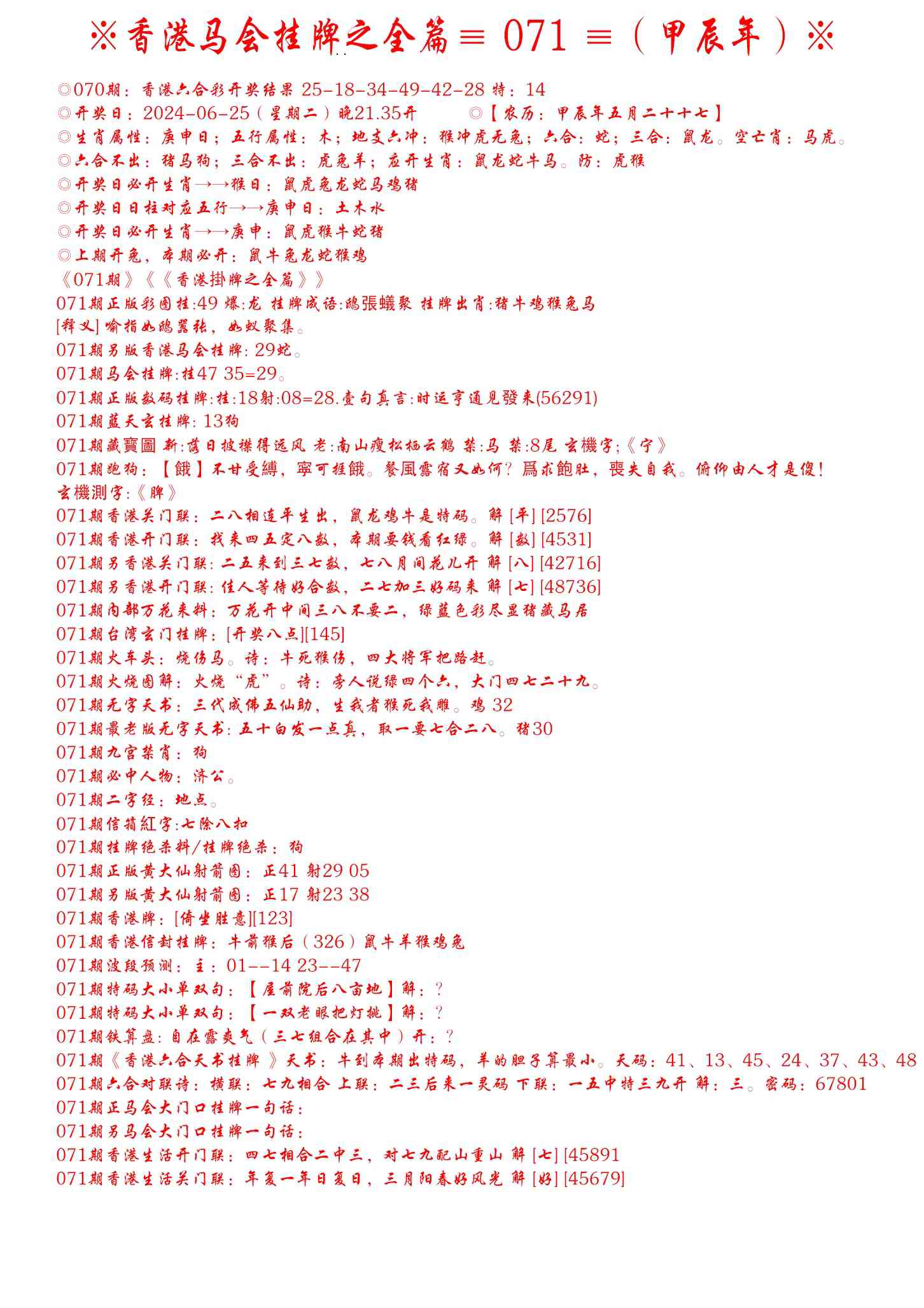 071期手写马会挂牌[图]