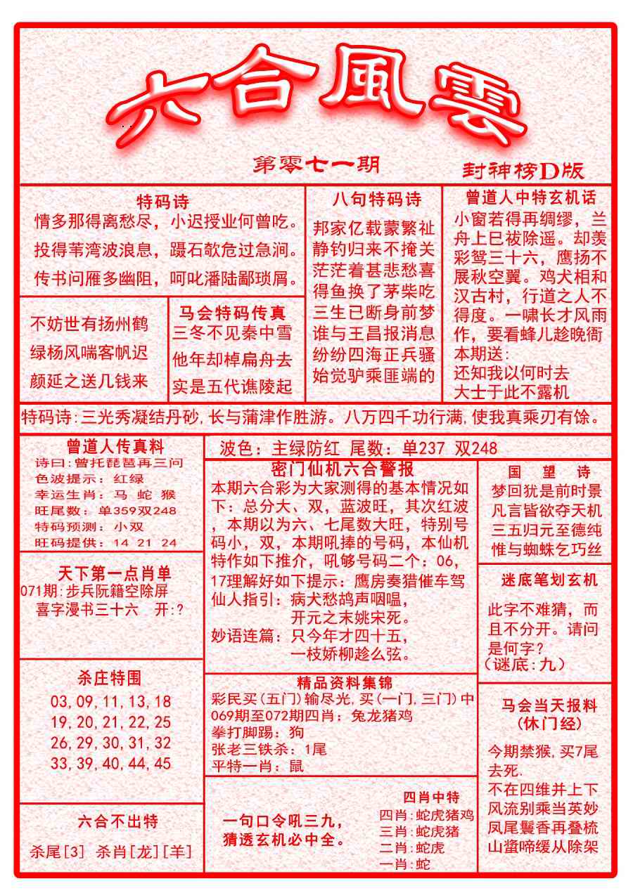 071期六合风云A面[图]