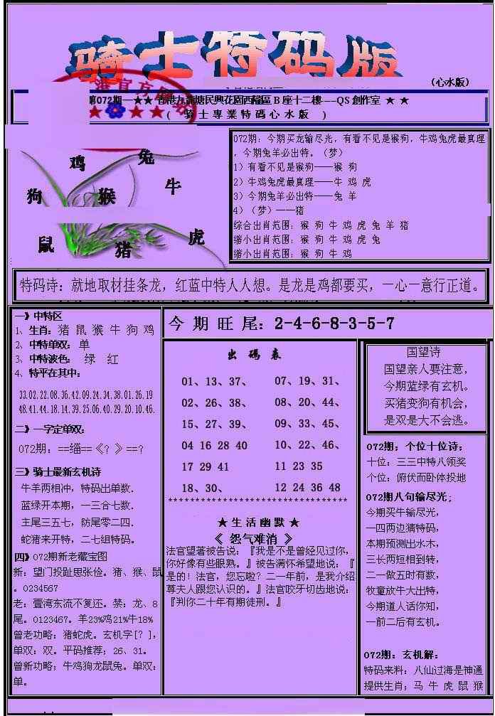 072期另骑士特码版[图]