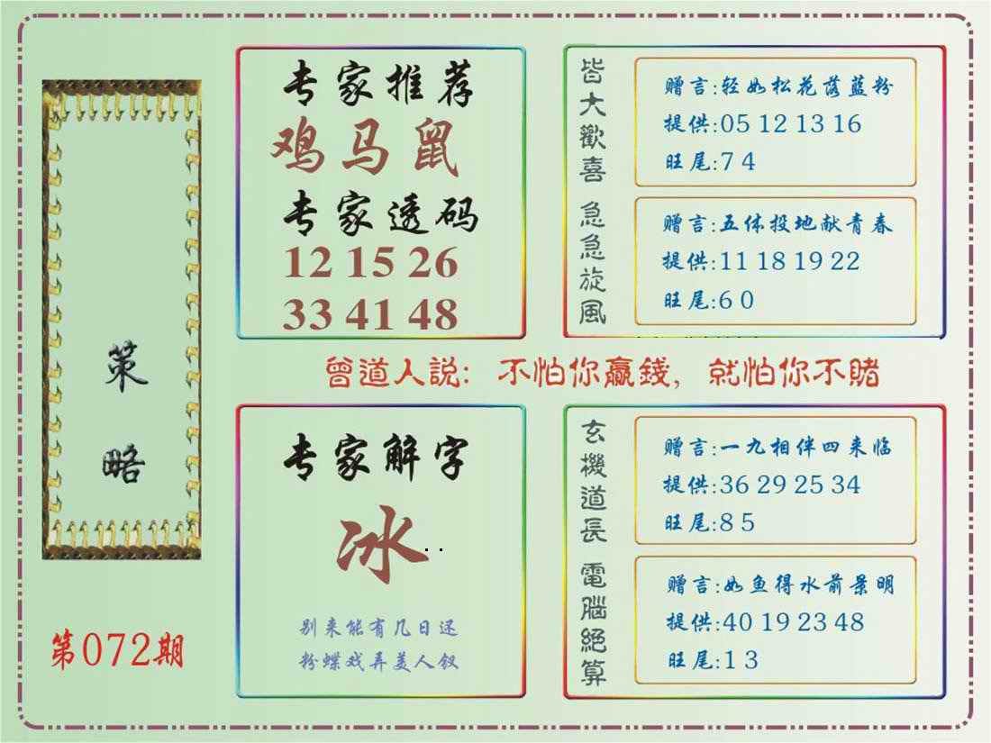 072期马经策略[图]