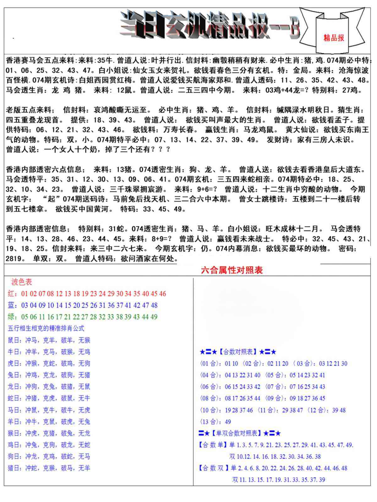 074期当日玄机精品报B[图]