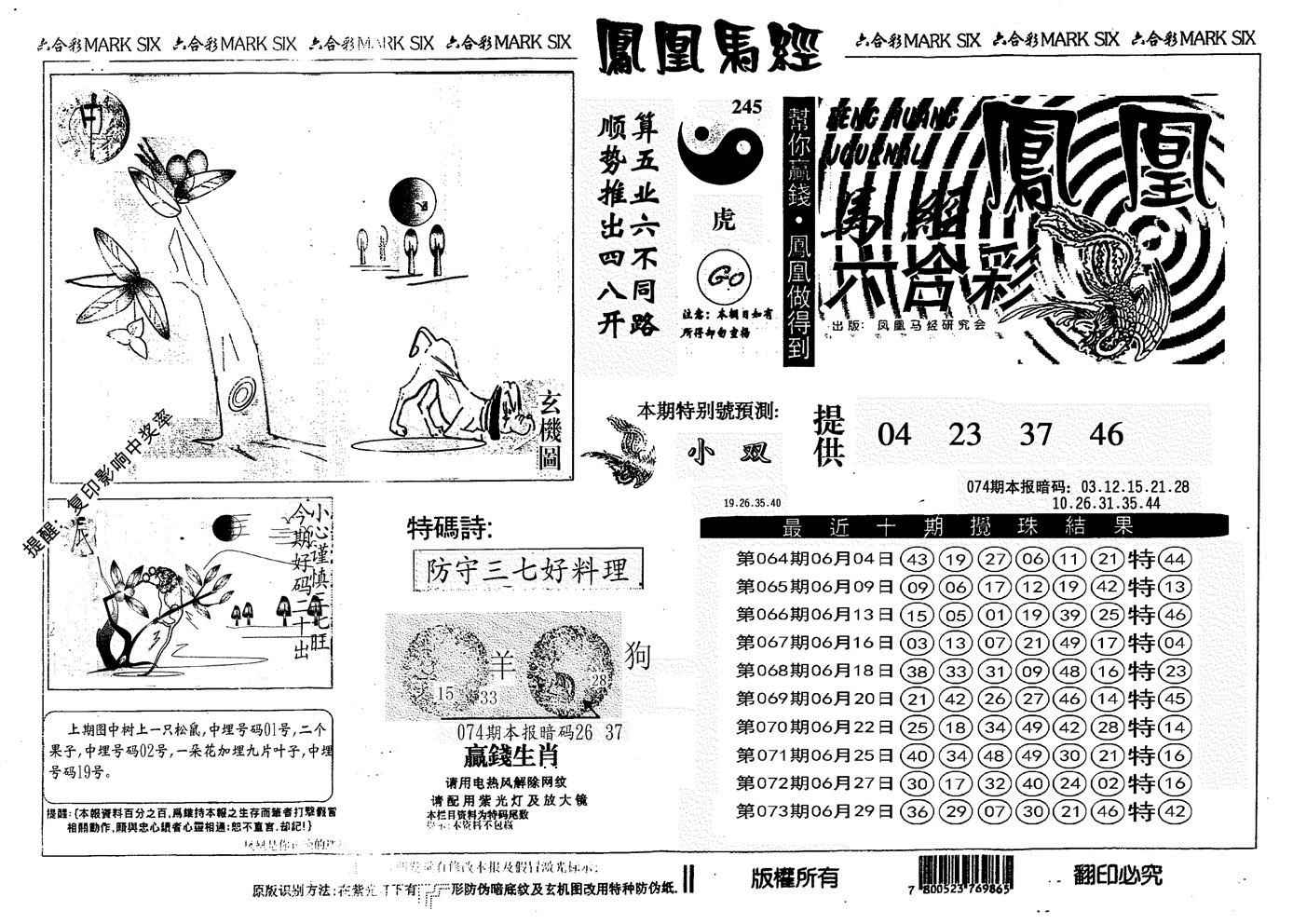 074期另版凤凰马经[图]