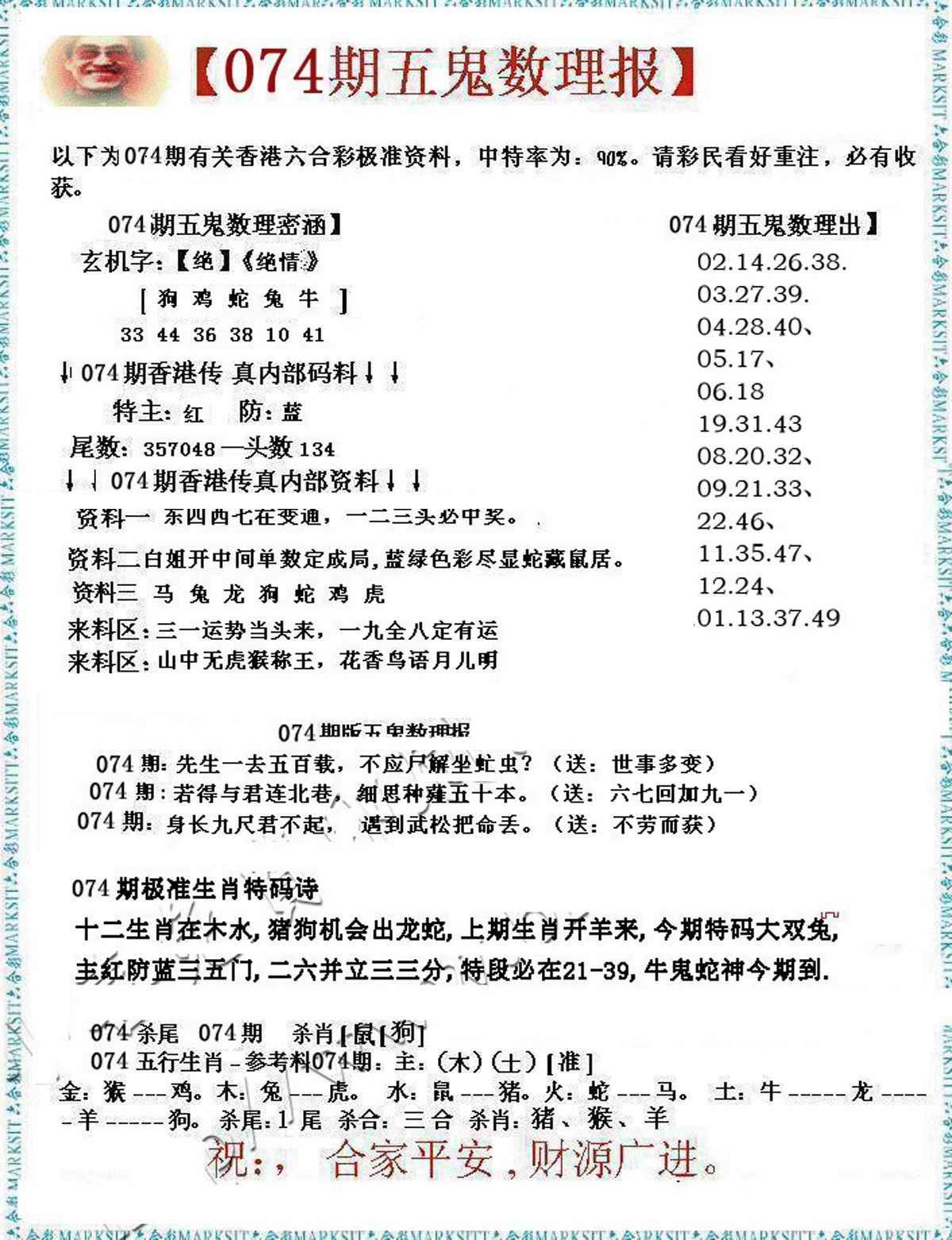 074期五鬼数理报[图]