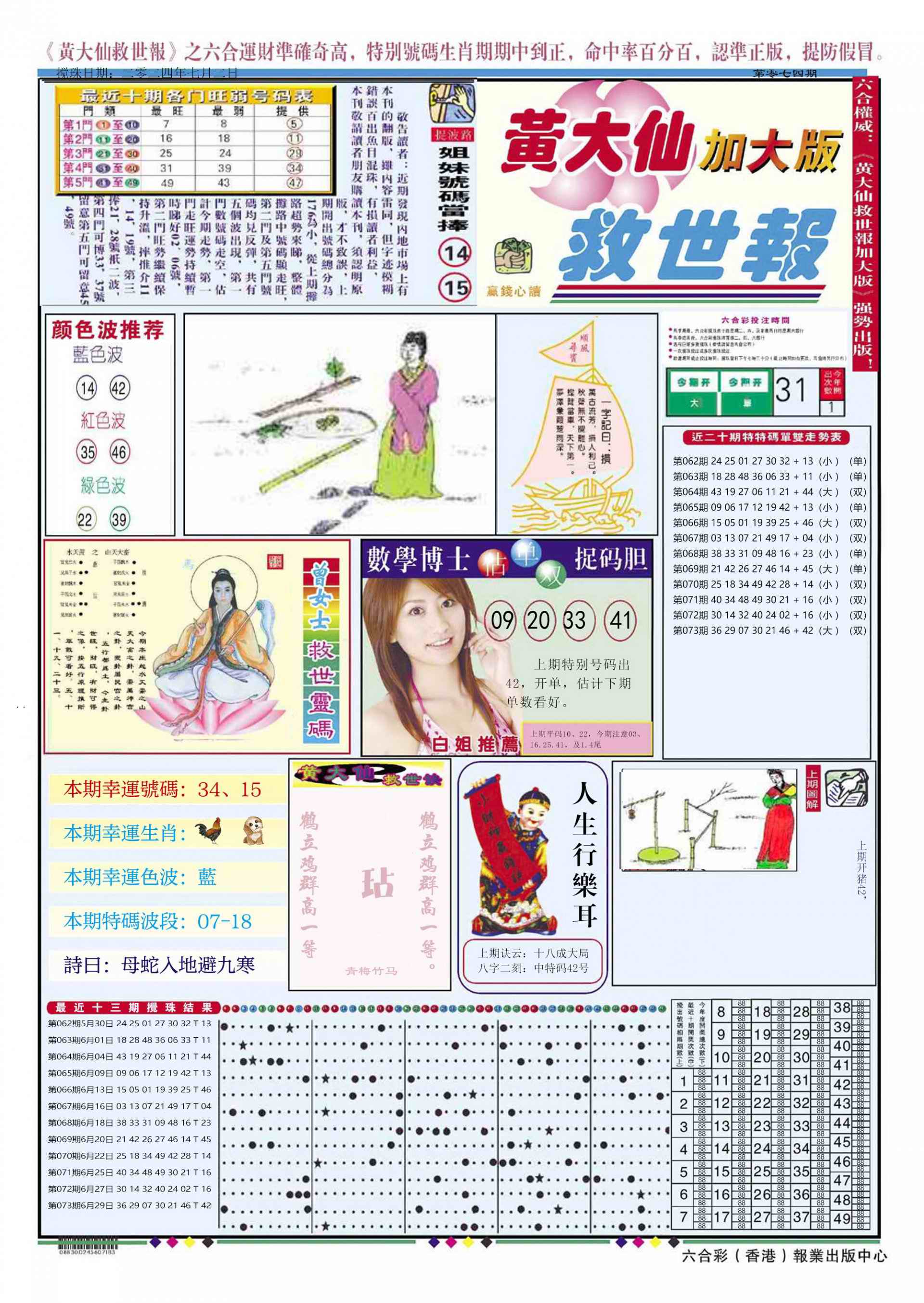 074期黄大仙救世A加大版[图]