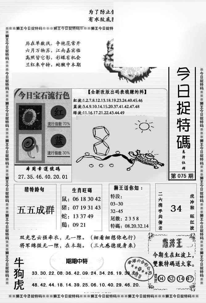 075期狮王今日抓特码[图]