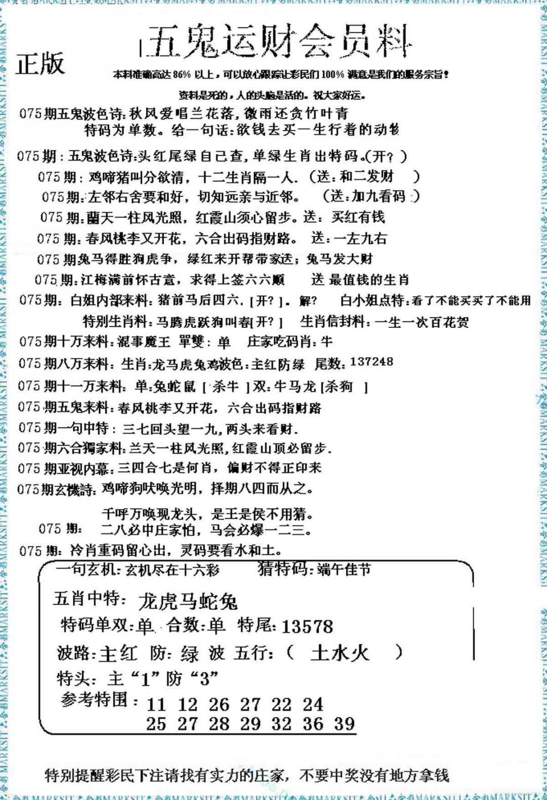 075期五鬼运财会员料[图]