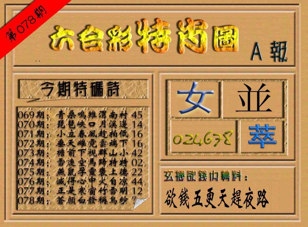 078期六合彩特肖图(A报)[图]