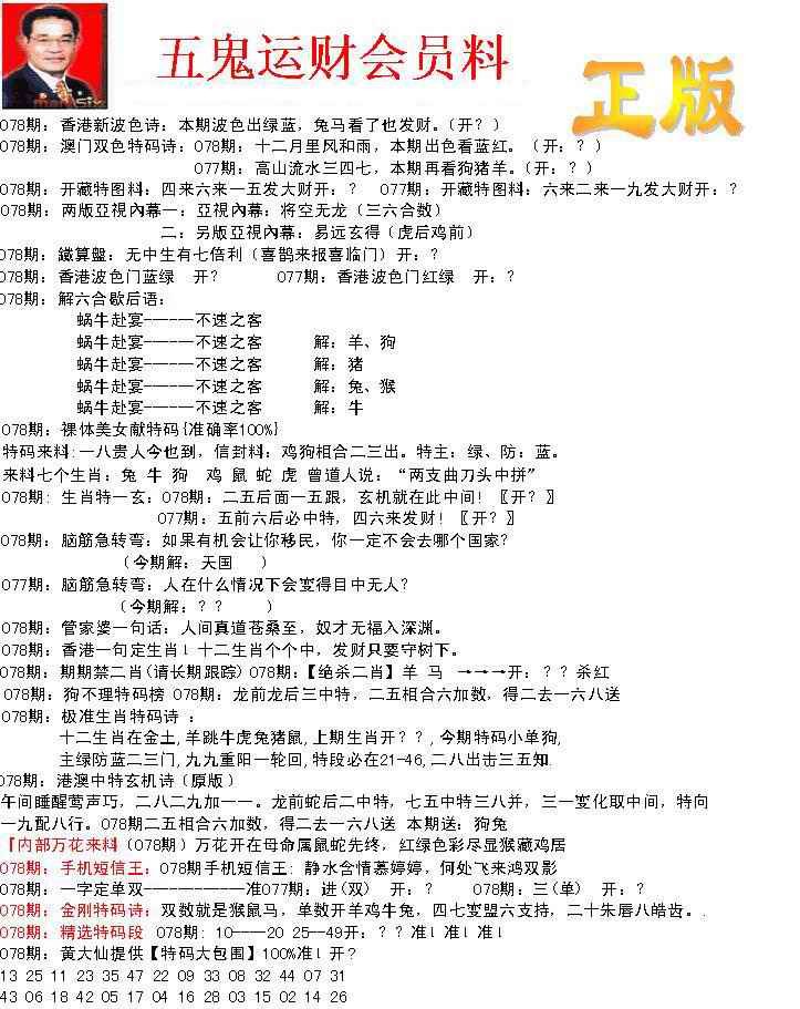 078期正版五鬼运财会员料[图]