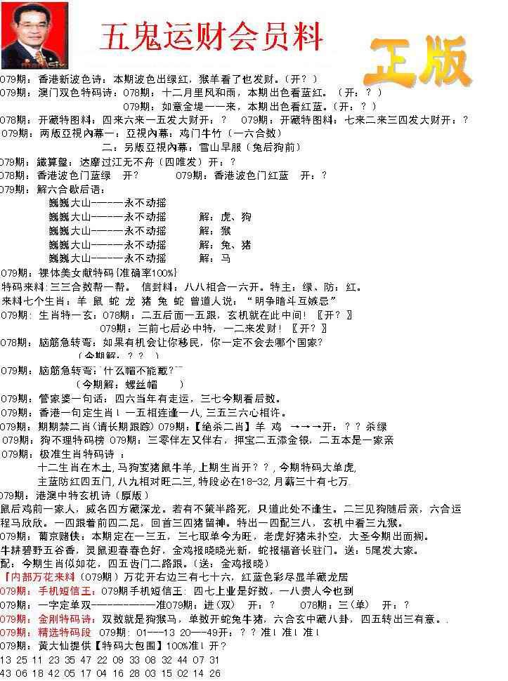 079期正版五鬼运财会员料[图]