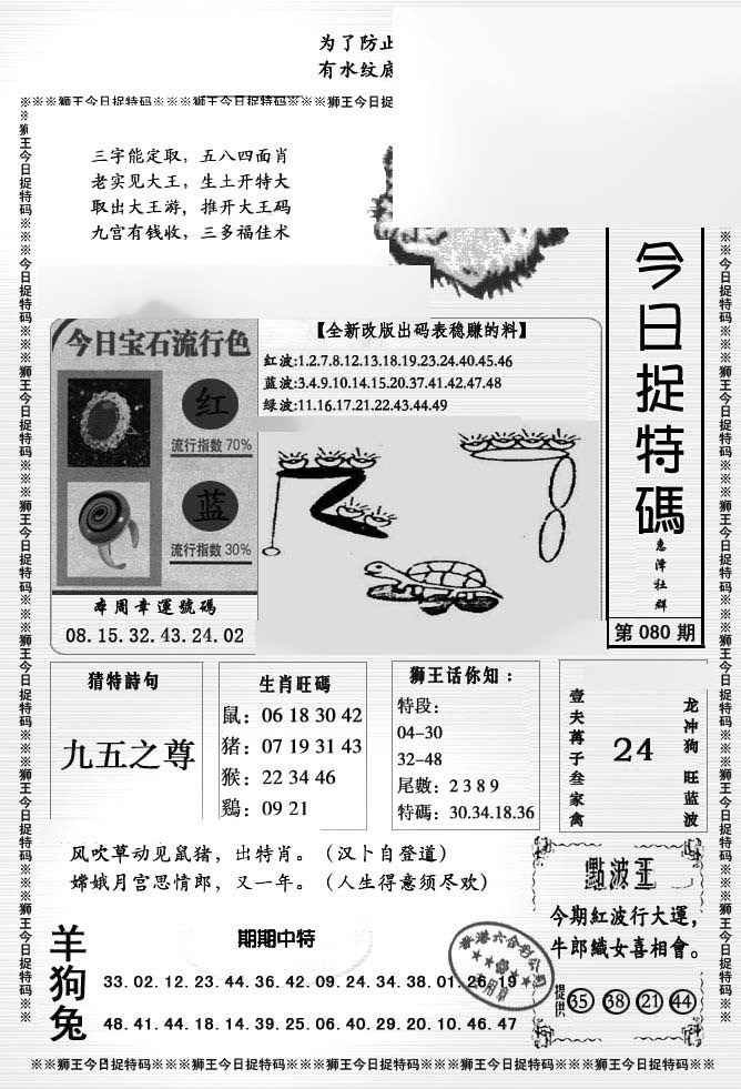 080期狮王今日抓特码[图]