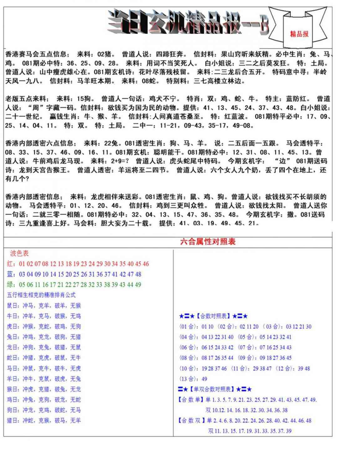 081期当日玄机精品报B[图]