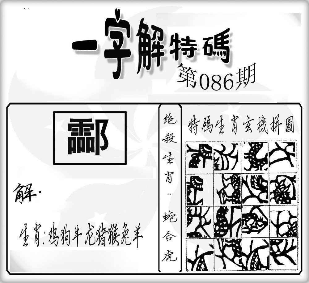 086期一字解特码[图]