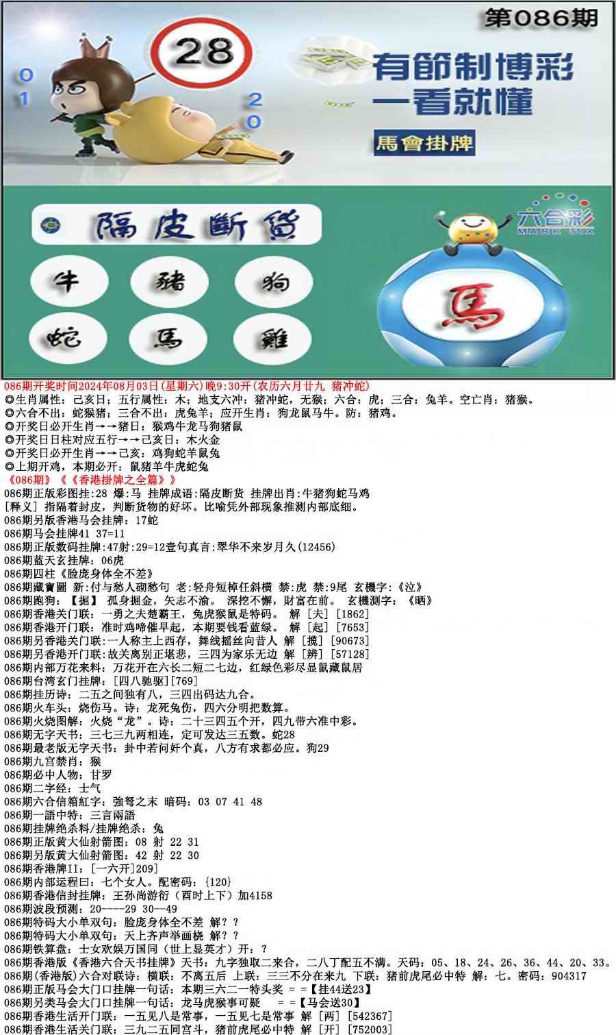 086期马会挂牌[图]