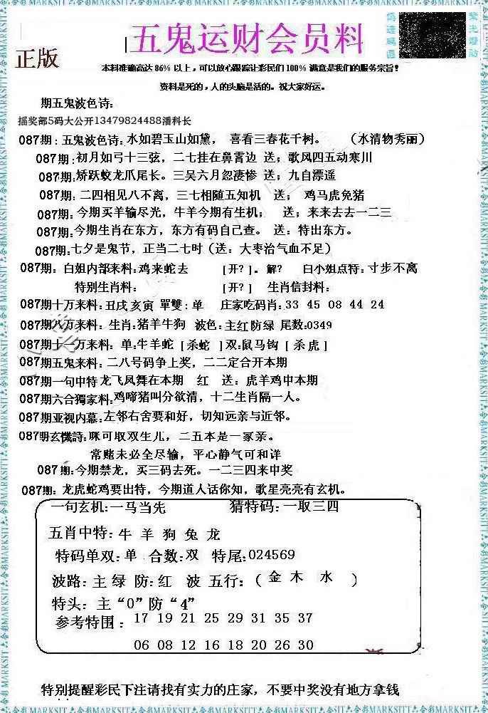 087期五鬼运财会员料[图]