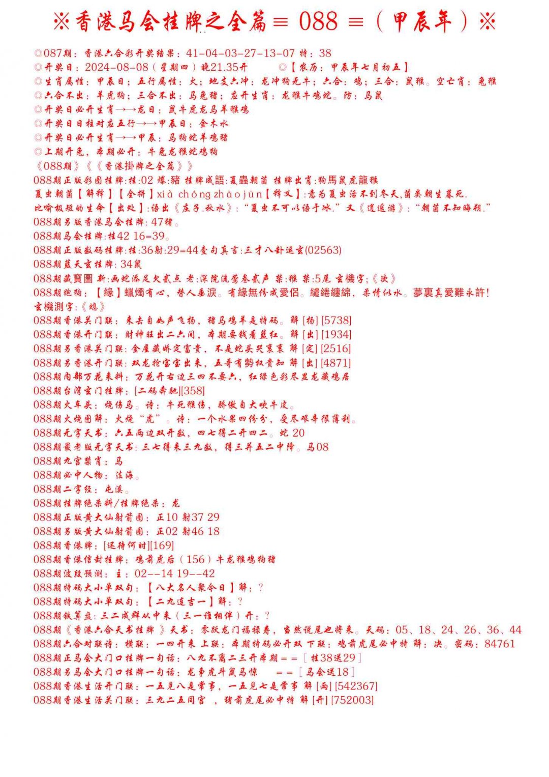 088期手写马会挂牌[图]