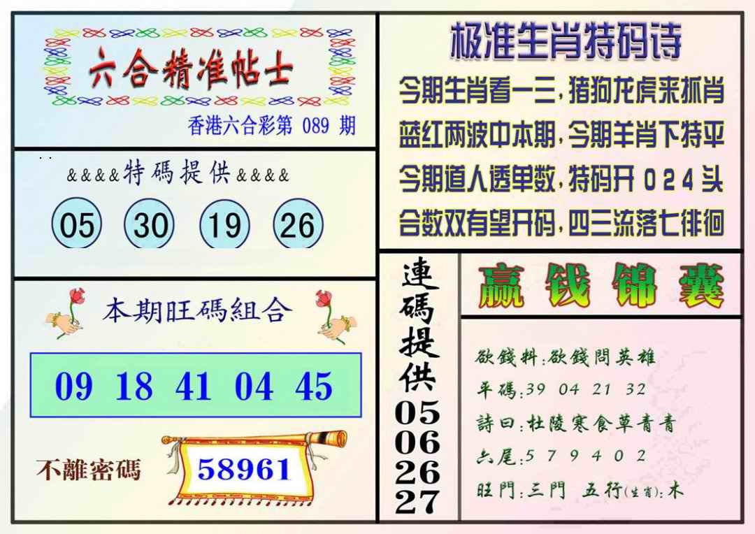 089期精准贴士[图]