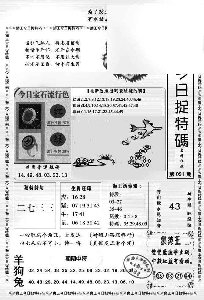 091期狮王今日抓特码[图]
