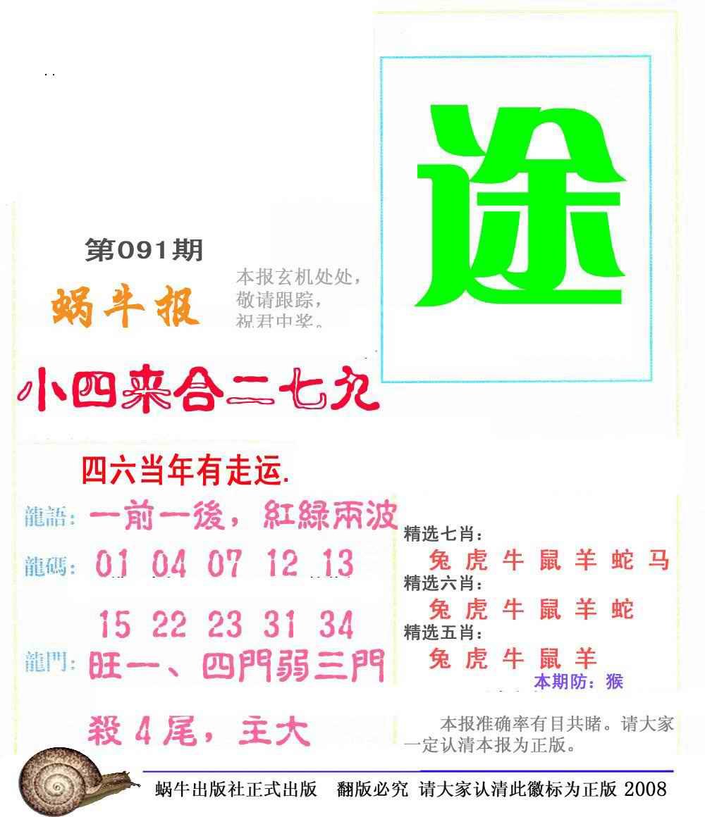 091期蜗牛彩报(正版)[图]