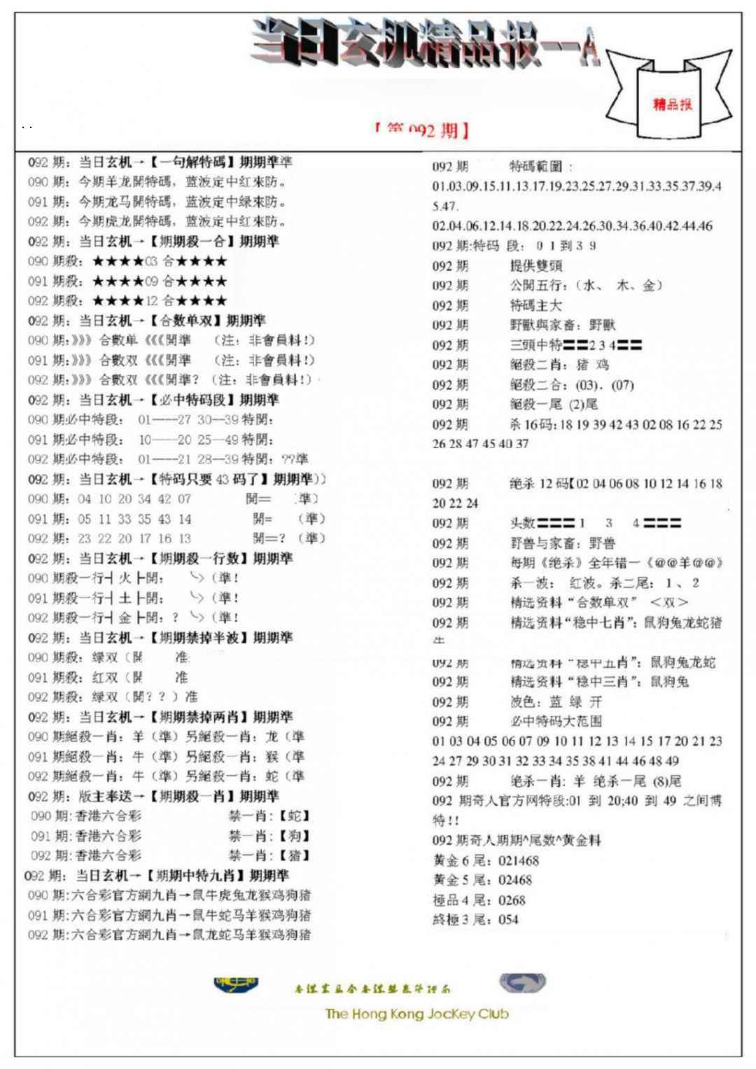 092期当日玄机精品报A[图]