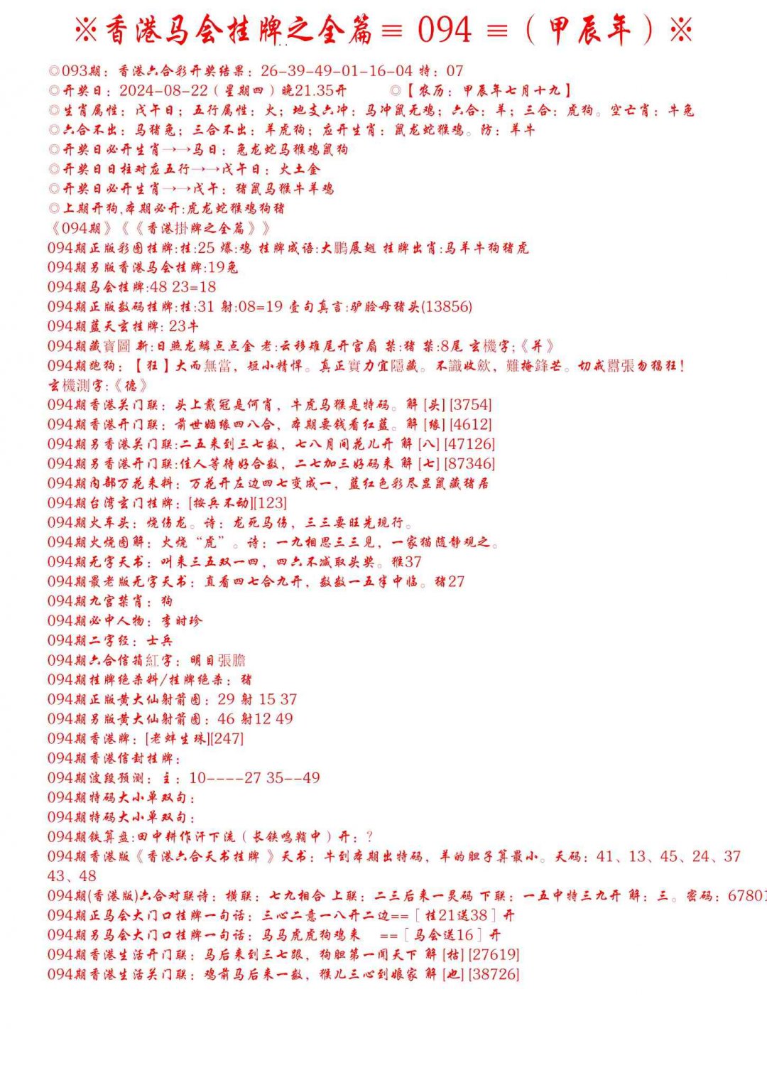 094期手写马会挂牌[图]