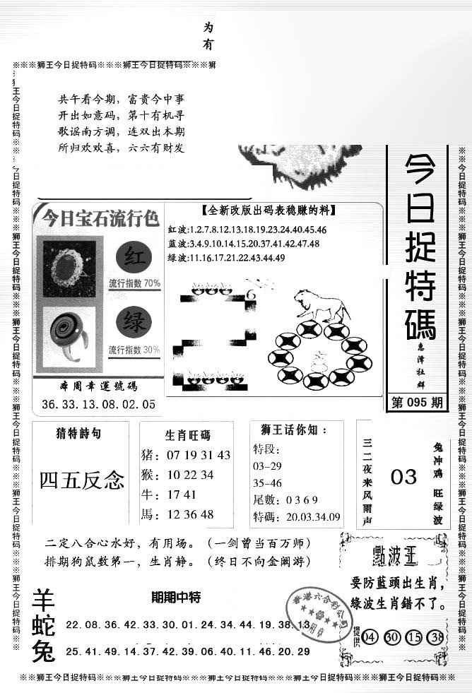 095期狮王今日抓特码[图]