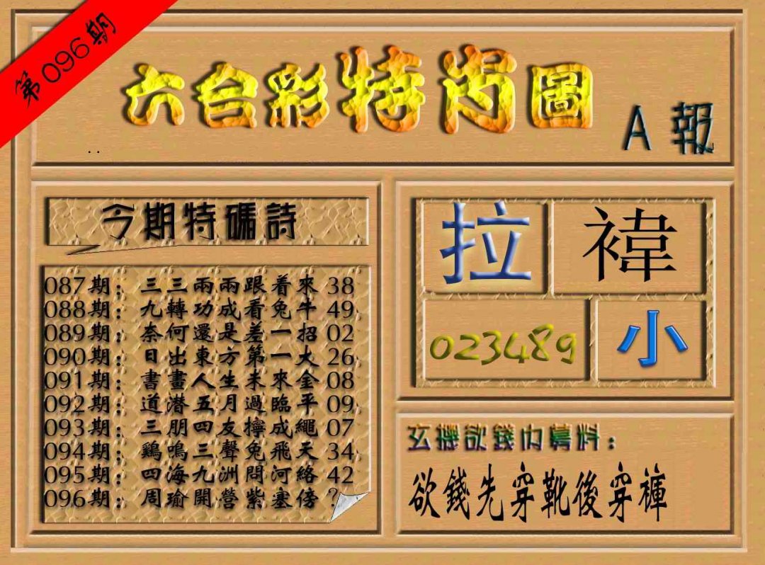 096期六合彩特肖图(A报)[图]