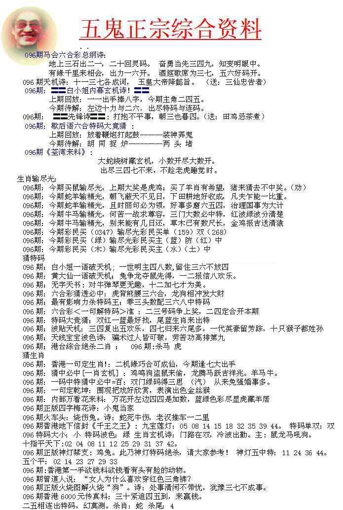 096期五鬼正宗会员综合资料A[图]